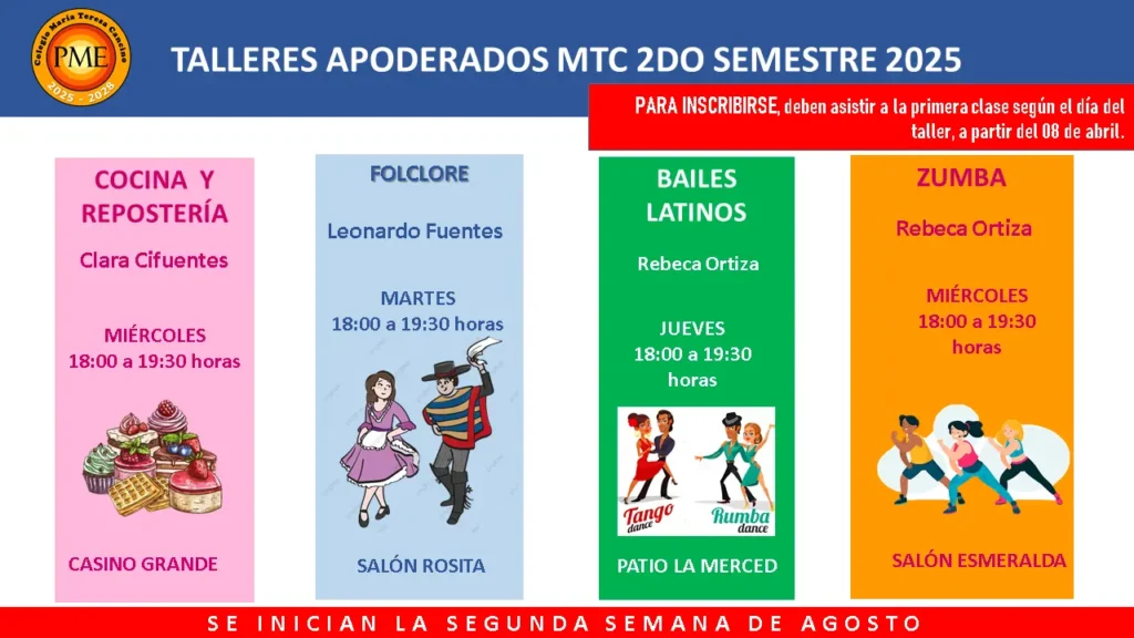 Estimada comunidad, por este medio damos a conocer los talleres extraprogramáticos 2025, que ofreceremos este año a las estudiantes. Estos